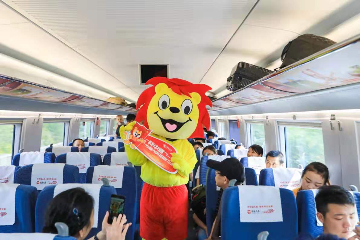 中意人壽高鐵專列于12時從上海虹橋站馳騁而出,為慶祝新中國成立70周年,中意人壽相關人員在專列上組織“愛國知識有獎問答”“愛國歌曲串燒”等多種形式的互動小游戲,與乘客們親密互動,在傳遞品牌形象和愛國知識的同時,活躍了現場氣氛,為旅途增加別樣的樂趣。