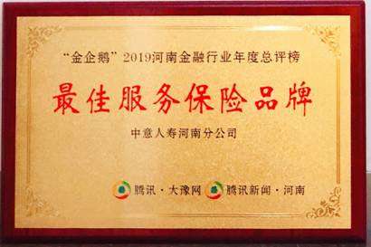 近期,由騰訊•大豫網(wǎng)主辦的2019年度“金企鵝”獎(jiǎng)——河南金融行業(yè)年度總評(píng)榜頒獎(jiǎng)典禮在鄭州舉行。中意人壽河南省分公司獲膺“最佳服務(wù)保險(xiǎn)品牌”獎(jiǎng)項(xiàng)。