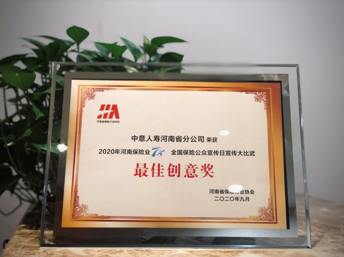 【新聞—河南省分公司】將保險(xiǎn)理念傳遞給千家萬(wàn)戶(hù) 中意人壽河南分公司榮獲“最佳創(chuàng)意獎(jiǎng)”