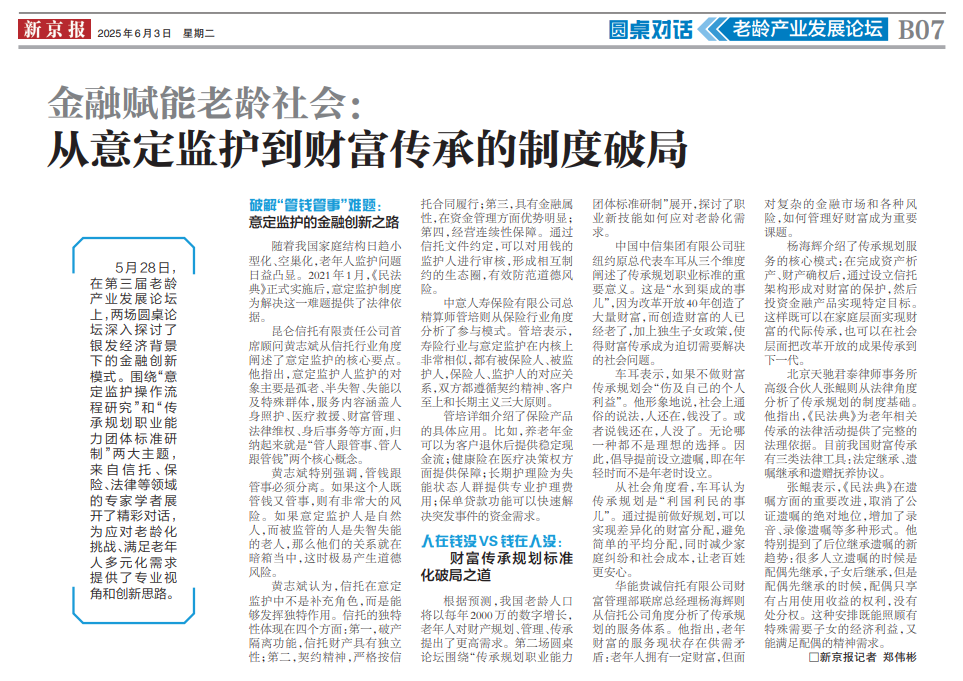 【新聞】新京報對談中意人壽總精算師:保險業如何賦能意定監護制度推廣