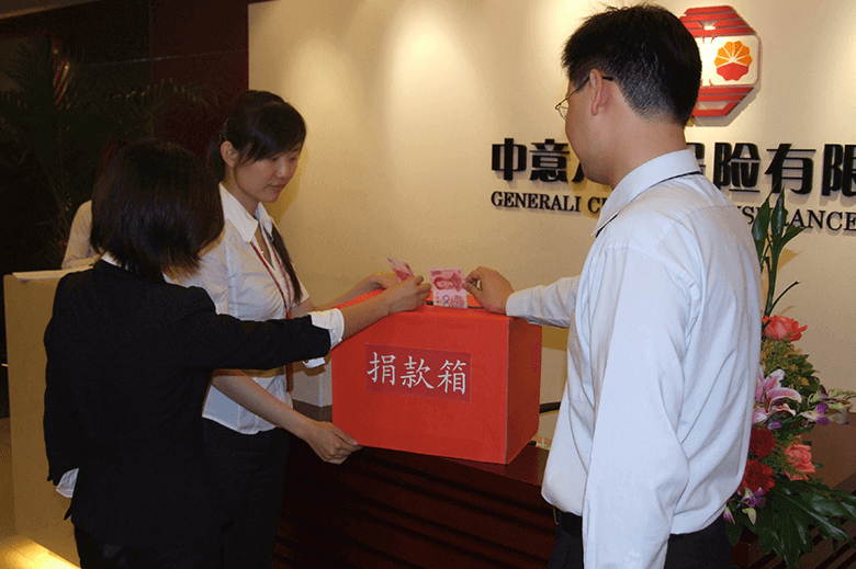 2008年,四川汶川“5?12”特大地震發生后,災區人民的危難處境無時無刻不牽動著中意人壽全體員工的心。中意人壽迅速以公司名義向中國紅十字會捐款30萬元,幫助災區同胞度過難關,此外,廣大員工也積極響應,紛紛慷慨解囊,向中國紅十字會捐款共計21萬余元。