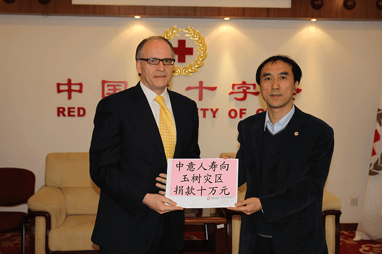 2010年4月14日,青海省玉樹州玉樹縣發生7.1級地震,9時25分又發生6.3級余震,造成重大人員和財產損失,救災應急物資短缺。中意人壽當即向青海玉樹地震災區捐款10萬元,成為首家向災區捐款的保險公司。22日,中意人壽廣東省分公司東莞營銷服務部發起“情系玉樹,奉獻愛心”賑災捐款活動,共募集善款10200元。29日,中意人壽四川省分公司向四川省衛生廳赴玉樹地震災區救援隊贈送保額達800余萬元保險。